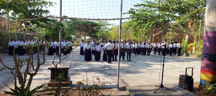 Pembinaan Kedisplinan oleh Danramil Kec. Sekaran pada kegiatan Upacara Bendera