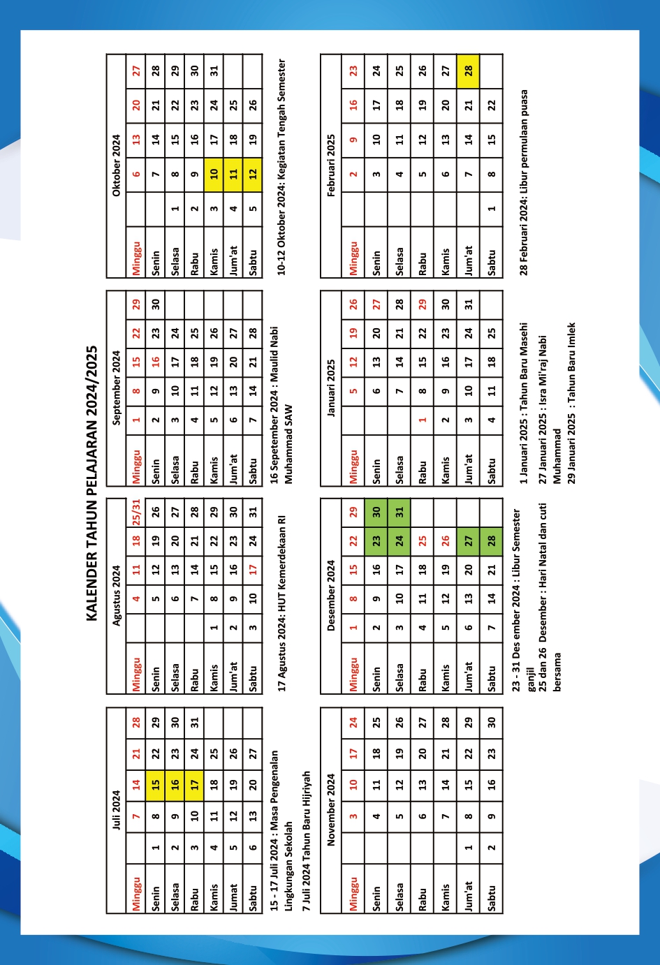 Kalender Akademik SMP Negeri 2 Sekaran